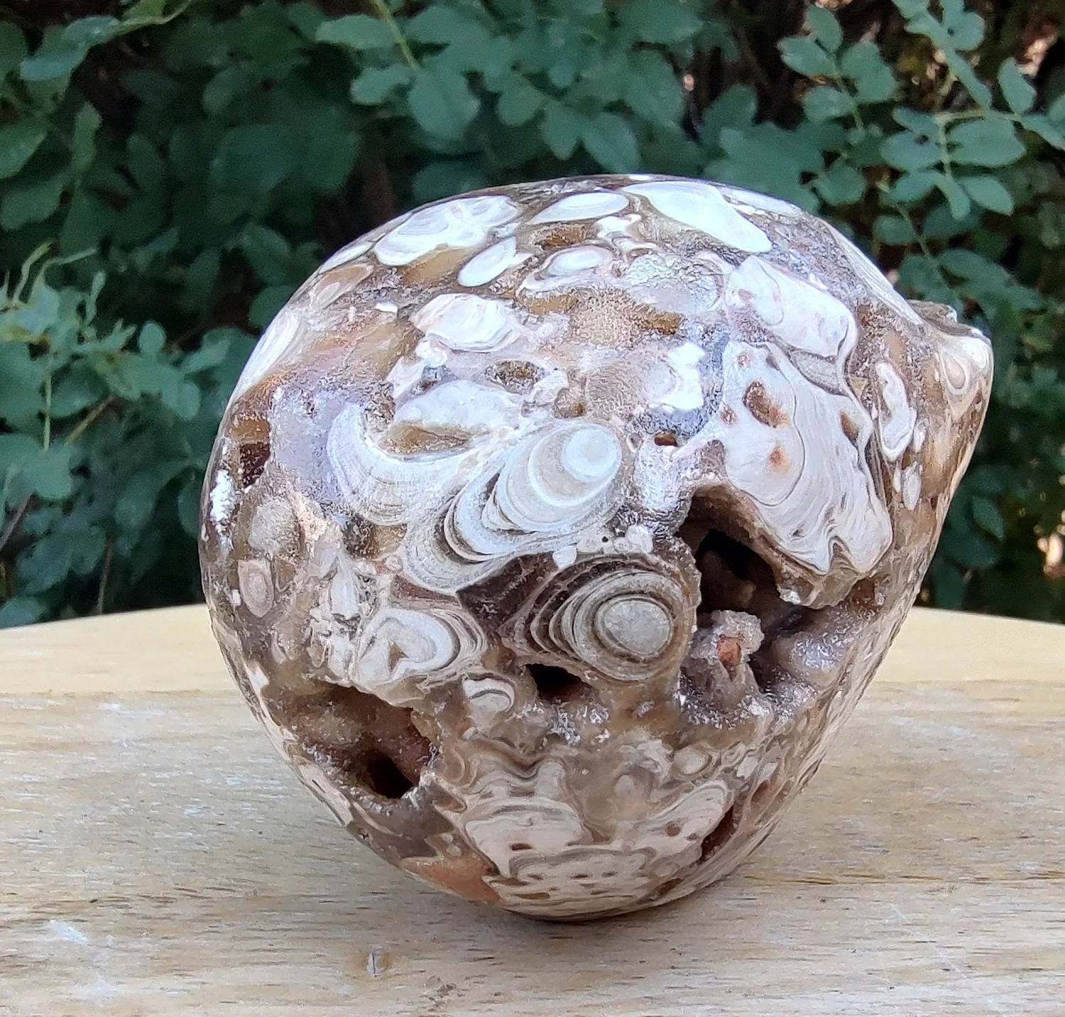 Each piece has unique swirl’s of brown, tan and orange. Exposed crystal may be present on your piece, but is not guaranteed.